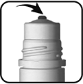 Coloque el picogotero AZUL en dirección a su ojo. Presione lenta y firmemente el frasco en la zona media, hasta que caiga la gota. No apriete bruscamente el frasco.